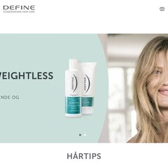 Emner: Define Hair Care, Produkter, Hårtips, Spør Frisøren, Møt Define-frisørene, og SØk.